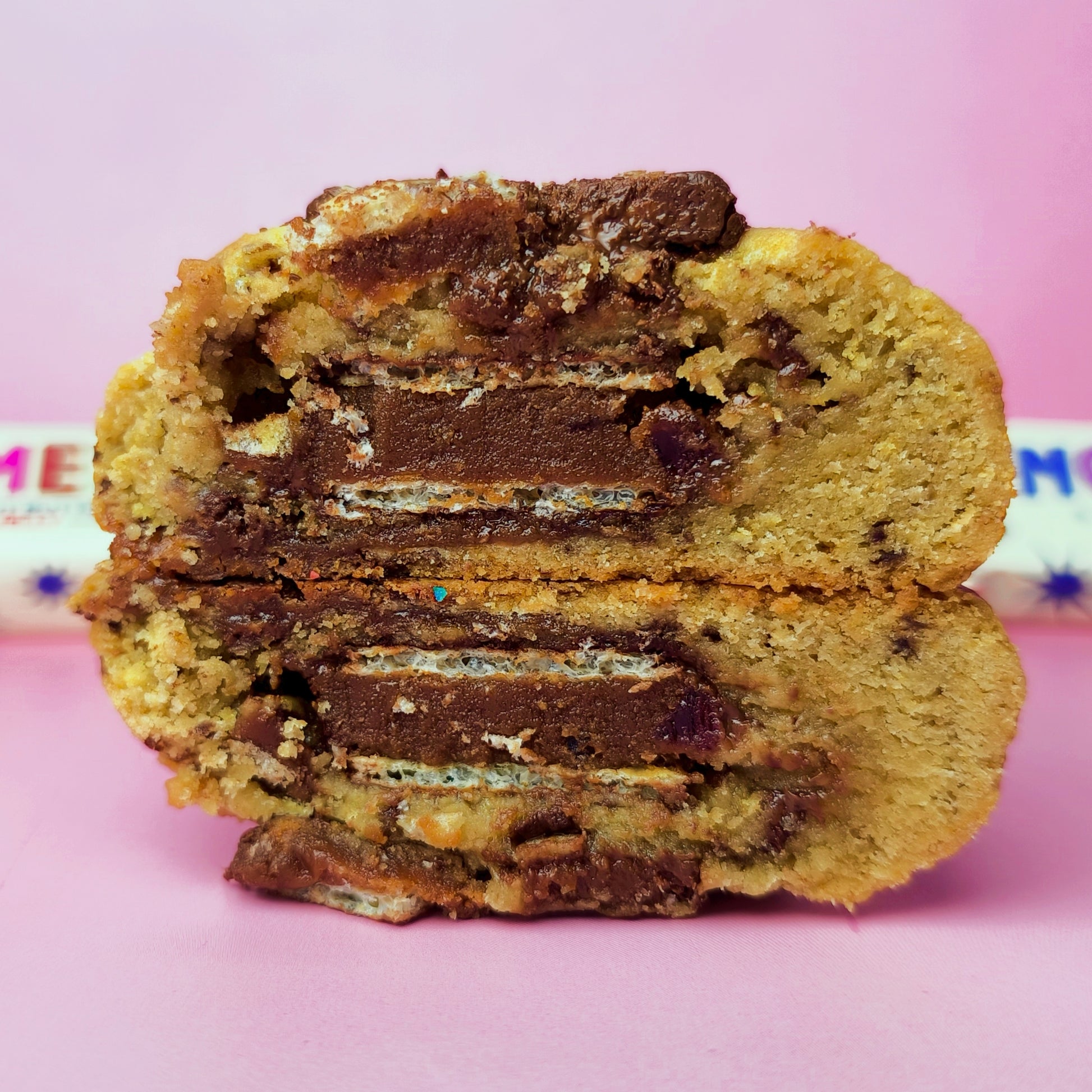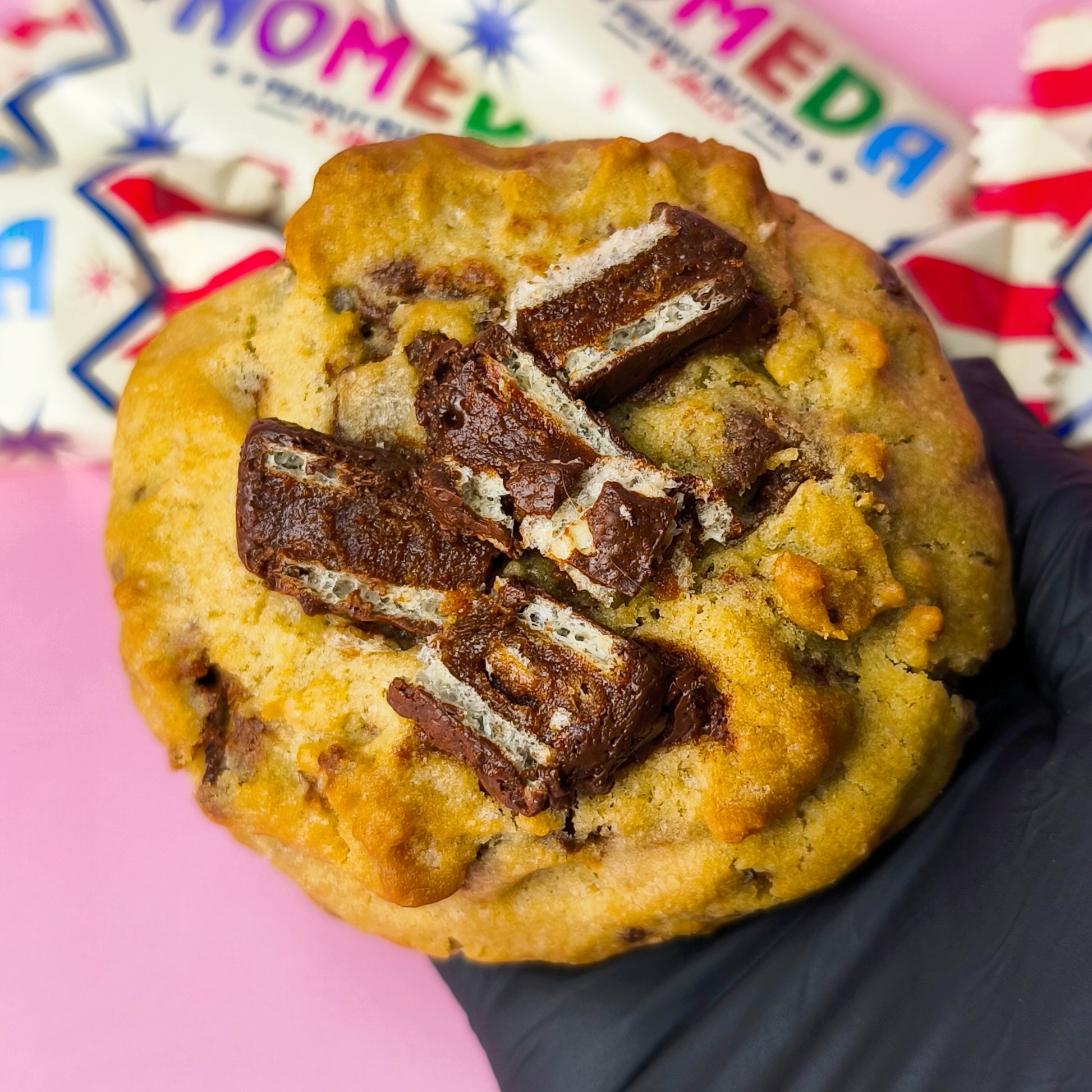 Sodrus, drėgnas ir neįtikėtinai aromatingas - šis sausainis tiesiog užvaldo skonio pojūčius. Viduje slepiasi visas „Nomeda Peanut Butter & Jelly“ saldainis, kuris suteikia intensyvų žemės riešutų sviesto ir saldžiarūgštės uogienės derinį. Kiekvienas kąsnis švelnus, minkštas ir kupinas kontrastų - sūrumo, saldumo ir šilto, jaukaus skonio, kurį norisi kartoti vėl ir vėl.