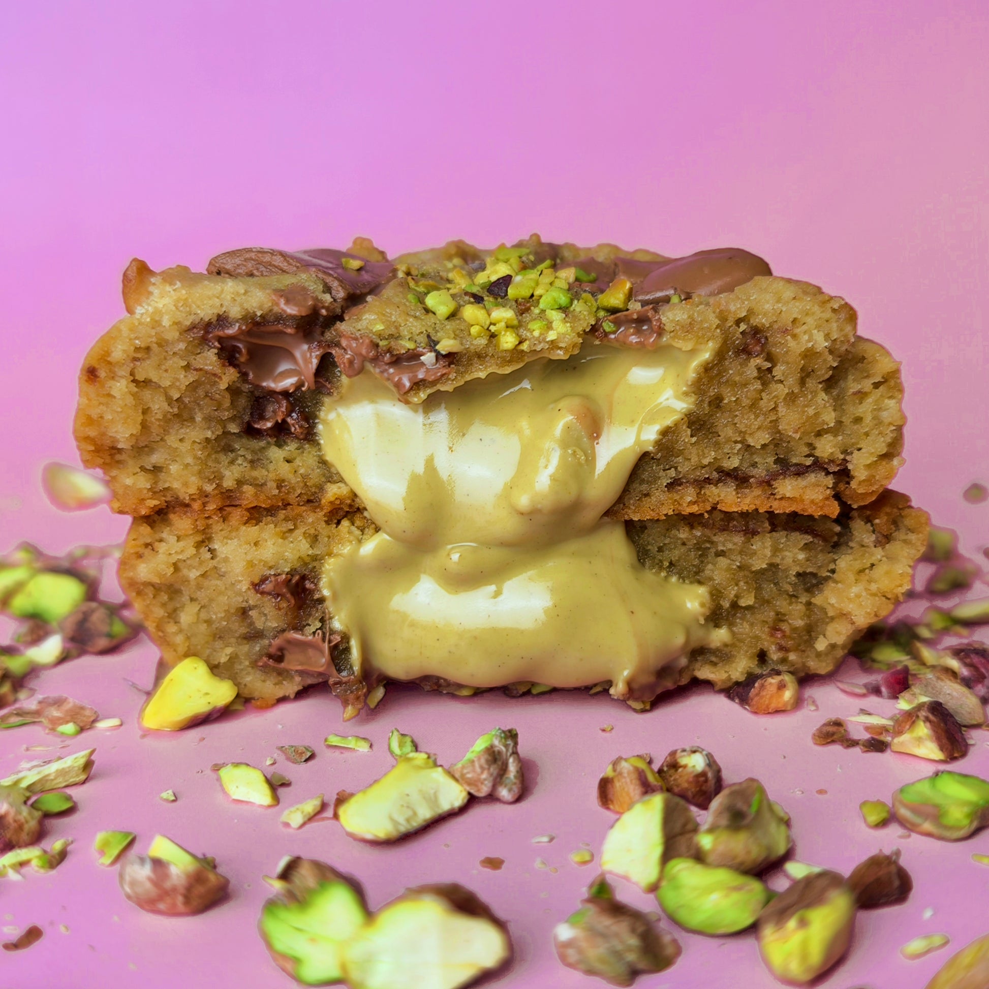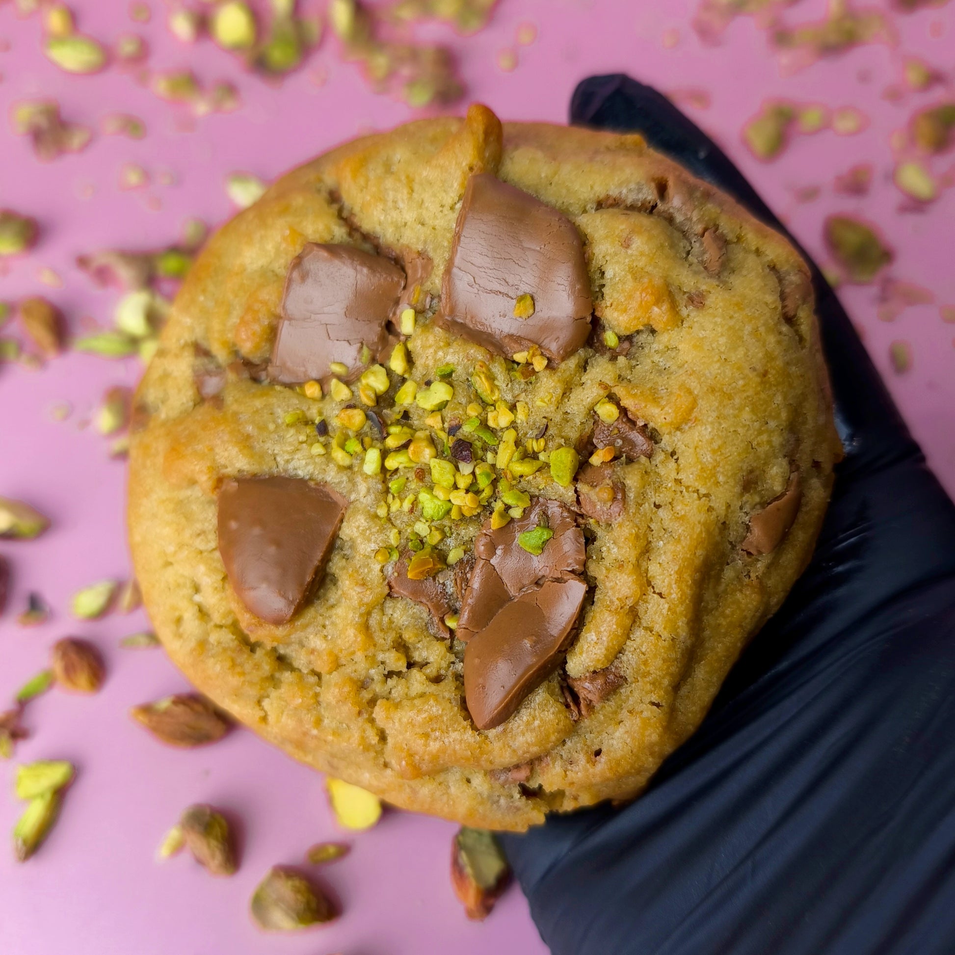 Švelniai sviestinis, minkštas ir tirpstantis burnoje, su pieniško šokolado gabalėliais kiekviename kąsnyje. Viduje slepiasi tiršta pistacijų kremo širdis - saldi ir švelni. Tobulas pasirinkimas tiems, kurie dievina pistacijas ir nori tikro saldumo pliūpsnio kiekviename kąsnyje.